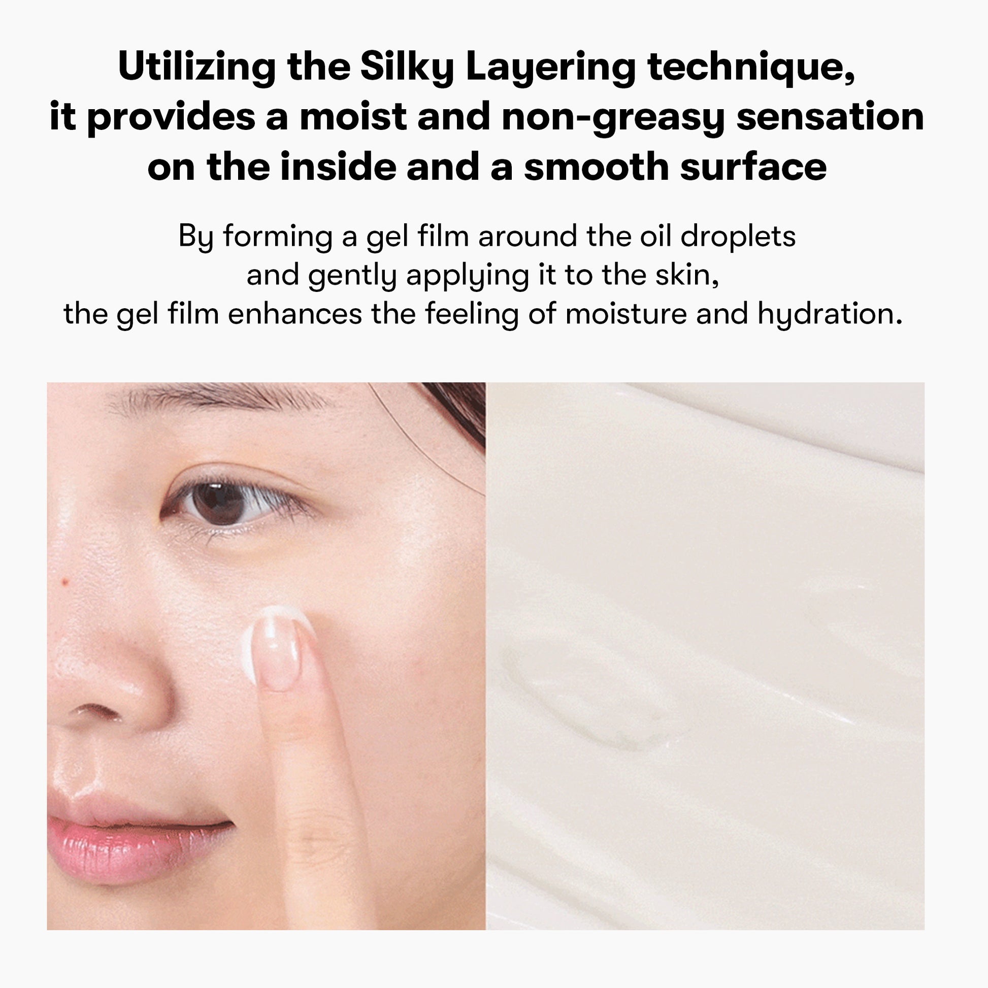 Silky Cream Texture: A lightweight gel texture wrapped in refreshing oil delivers long-lasting moisture without heaviness, leaving skin soft and comfortable.